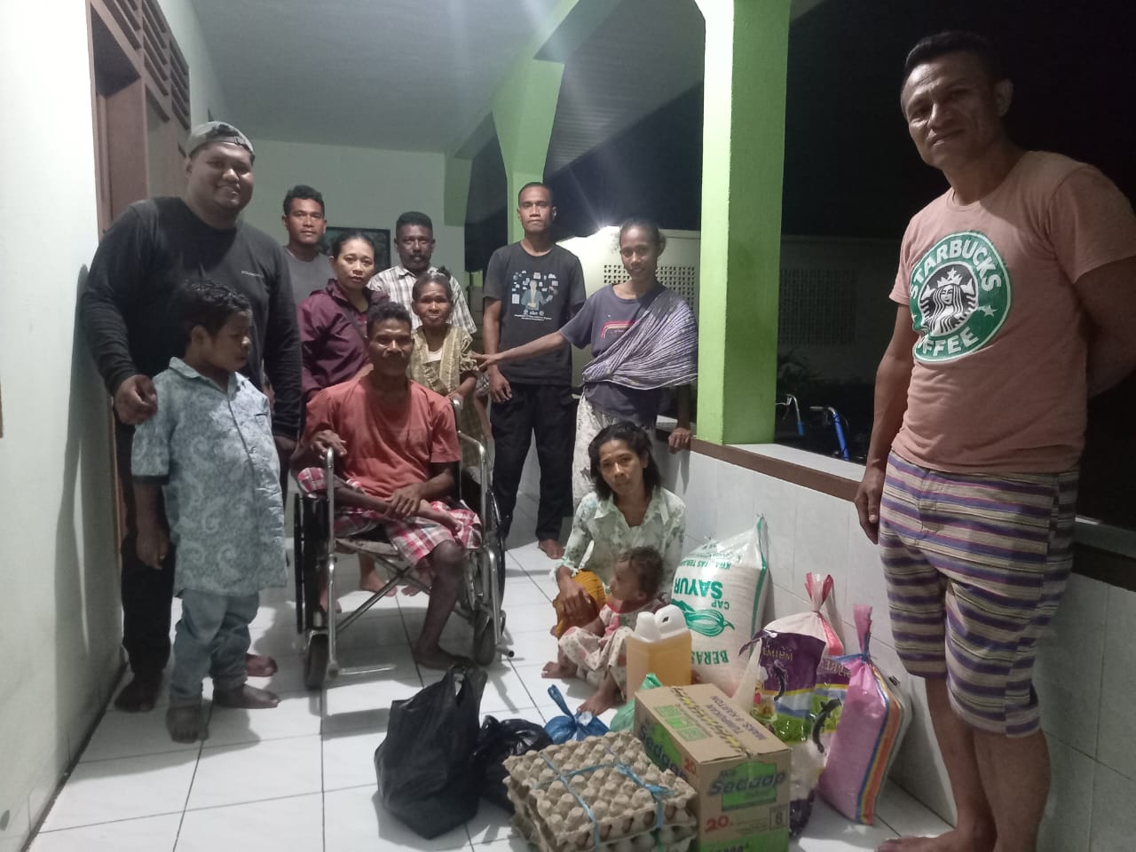 Bantuan tersebut diantar langsung oleh Ketua Lingkungan Sta. Felisitas, Stefanus Nong Piter, bersama beberapa tokoh umat. Rombongan disambut hangat oleh pengasuh Panti Sosial Stella Maris serta empat warga panti yang tinggal di sana.